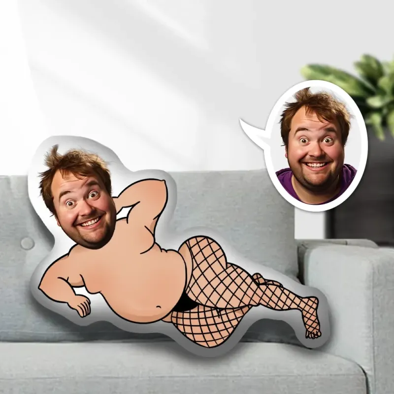 Cuscino Decorativo Minime Personalizzato Con Foto Di Un Ragazzo Sexy E Divertente In Calze A Rete, Regalo Per Lui.